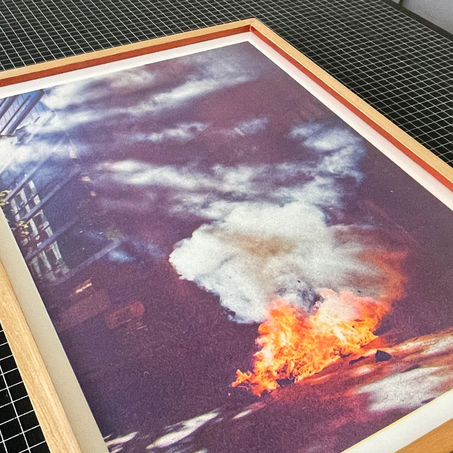 Risografía de fotografía de @v.garayreyes enmarcada en madera mañío y borde interior cobre. Tamaño 31x41cm.